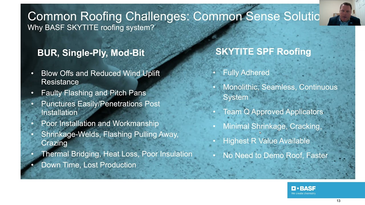 SKYTITE® spray-applied polyurethane foam (SPF) roofing systems deliver longer life expectancy and lower lifecycle cost over traditional systems. Help improve the building energy performance and durability, while helping to address urban heat island effect with a cool reflective roof coating, that can be sustained and renewed for the life of the building.