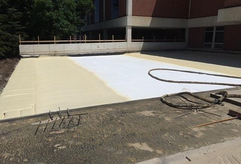 Exterior foundation insulation of both commercial and residential buildings can provide energy savings, a more uniformly conditioned space, and may also assist in providing a good base for the application of a liquid-applied waterproofing or damp-proofing material. When a spray foam and liquid-applied coating is used together, you create a seamless and fully adhered system unmatched by conventional systems.
